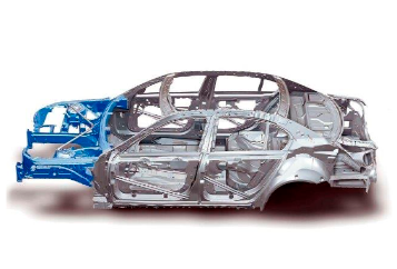 Uma base de aço responsável pela resistência estrutural de um automóvel.