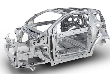 Uma base de aço responsável pela resistência estrutural de um automóvel.